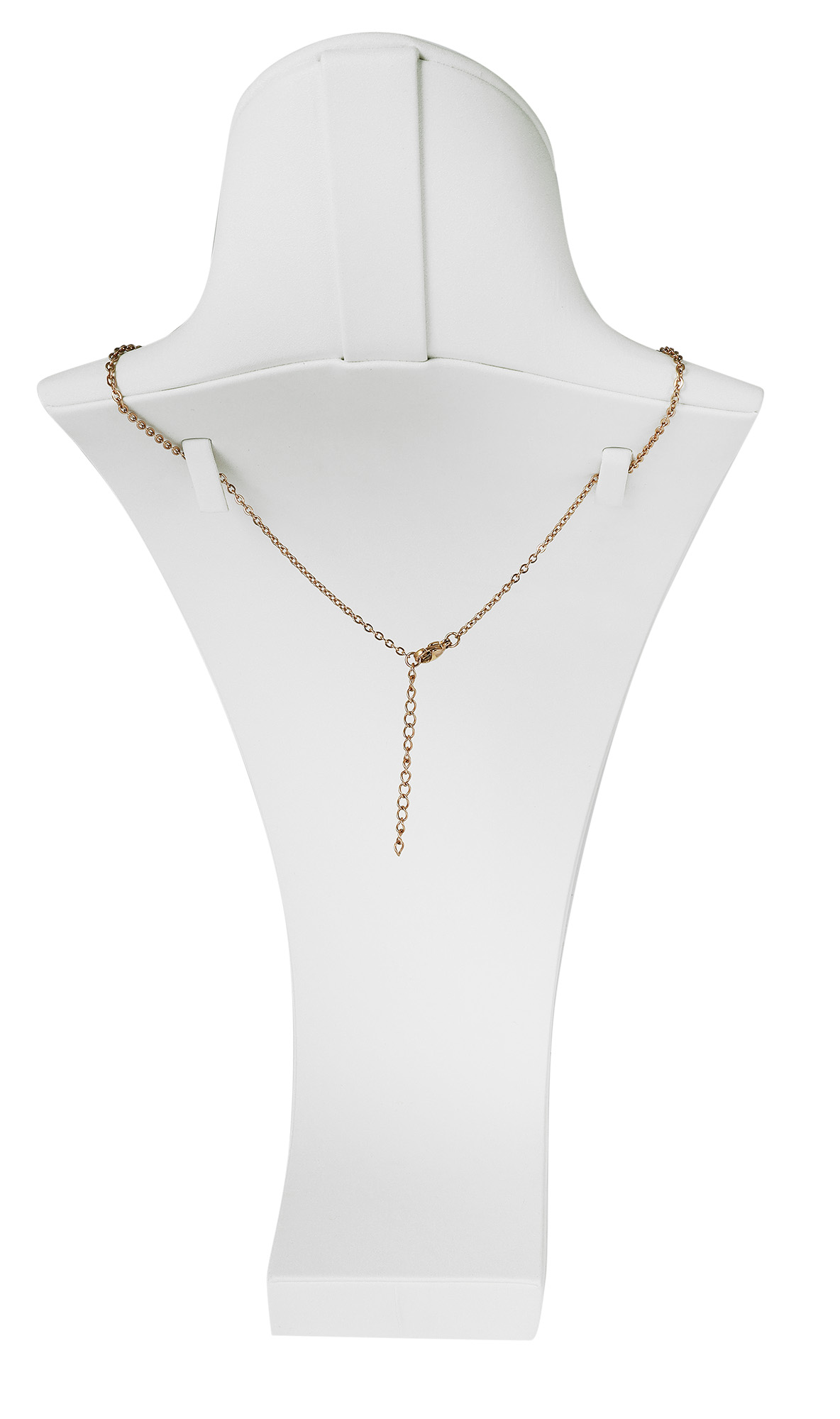 Deze juwelenbuste is ideaal voor het tonen van kettingen, chokers en hangers. Met zijn compacte afmetingen van 29 x 15,5 x 9 cm is hij zeer veelzijdig. De neutrale maar elegante look vestigt de aandacht direct op je product. Twee praktische haken aan de achterkant houden de kettingen stevig in de gewenste positie.