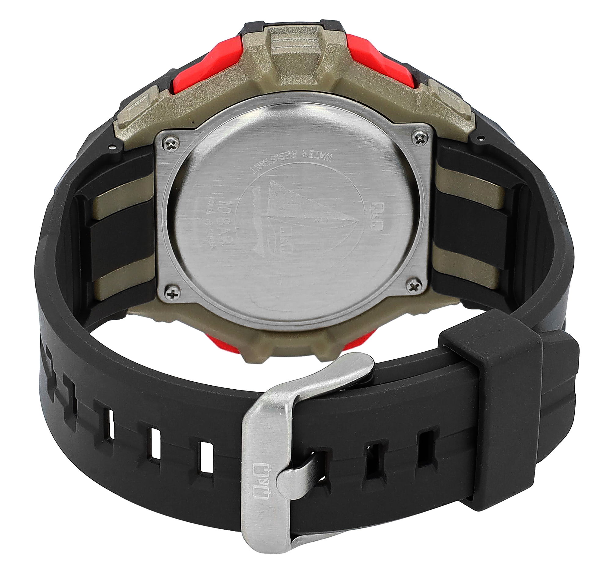 Diese sportliche Uhr von Q&Q - by Citizen Watch Co. LTD bietet vielzählige Funktionen in einem kompakten Gehäuse aus Kunststoff und Edelstahl: