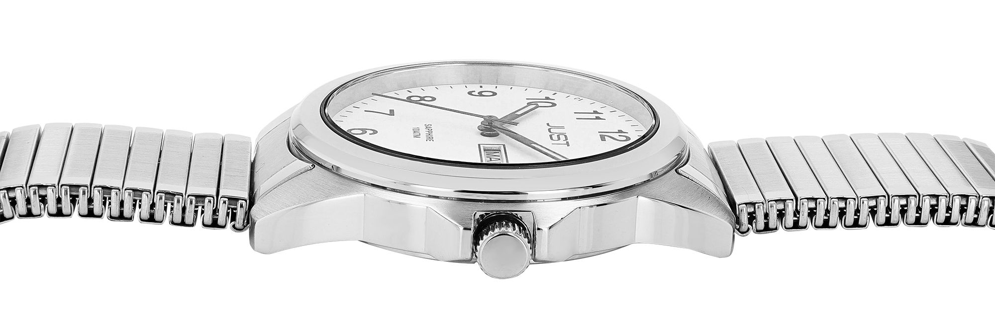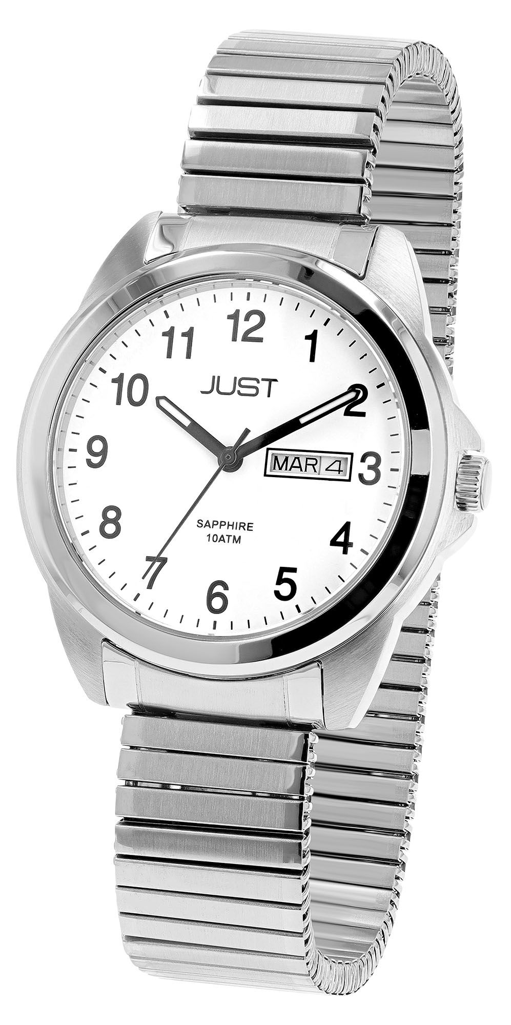 Productinformatie "JUST "Majivi" Herren Edelstahuhr mit Edelstahlzugband, 10 ATM, weißes ZB"