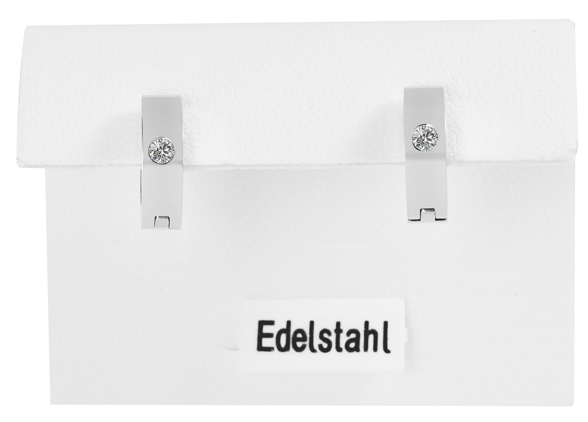 Productinformatie ""Daliah" Edelstahl Klapp-Creolen, Similibesatz, silberfarben"