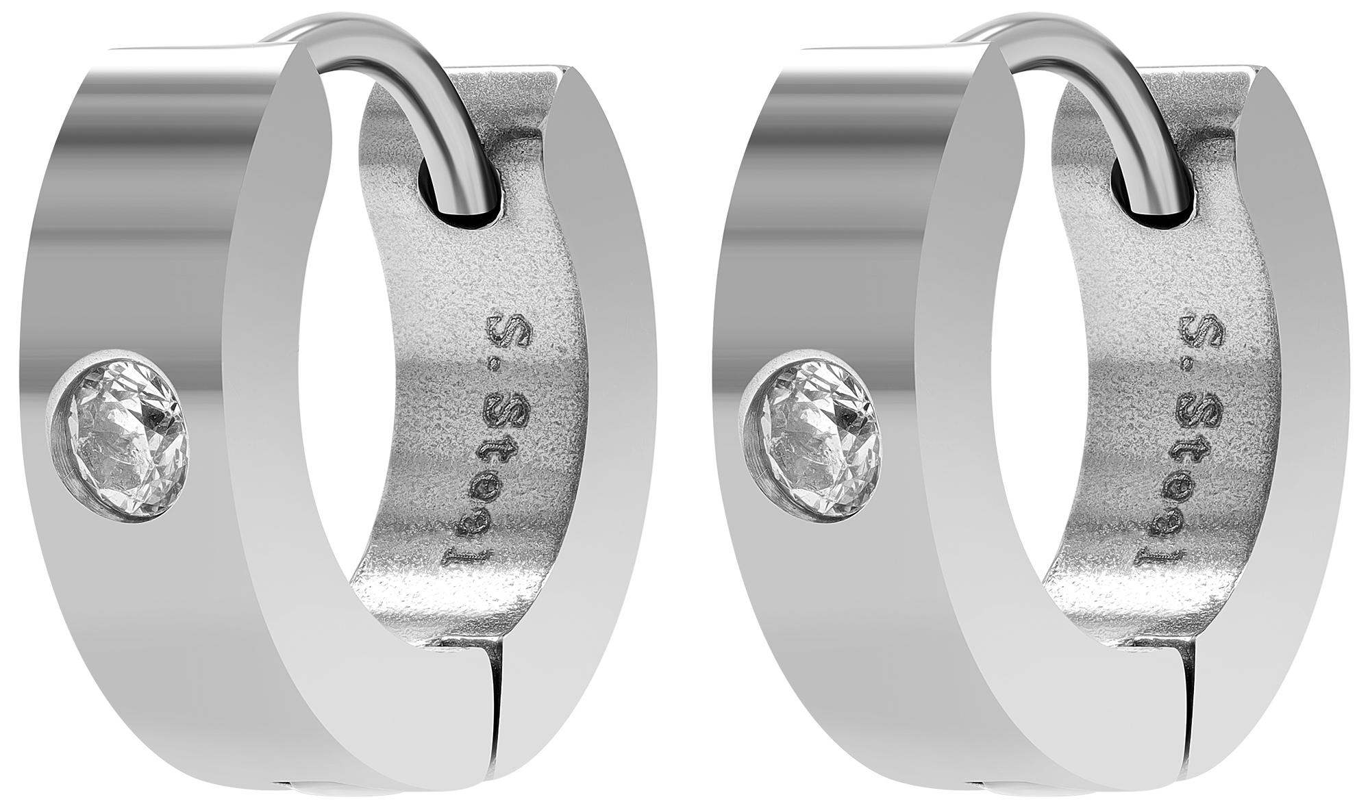 Deze stijlvolle roestvrijstalen hoepeloorbellen zijn een modern en veelzijdig sieraad. Het gepolijste oppervlak zorgt voor een elegante look, terwijl een fonkelende similietsteen een glinsterend accent toevoegt.