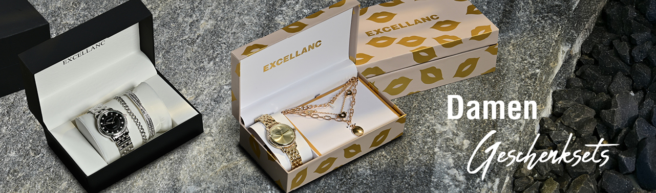 Excellanc Geschenkset mit Damenarmbanduhr und drei Ketten, goldfarben