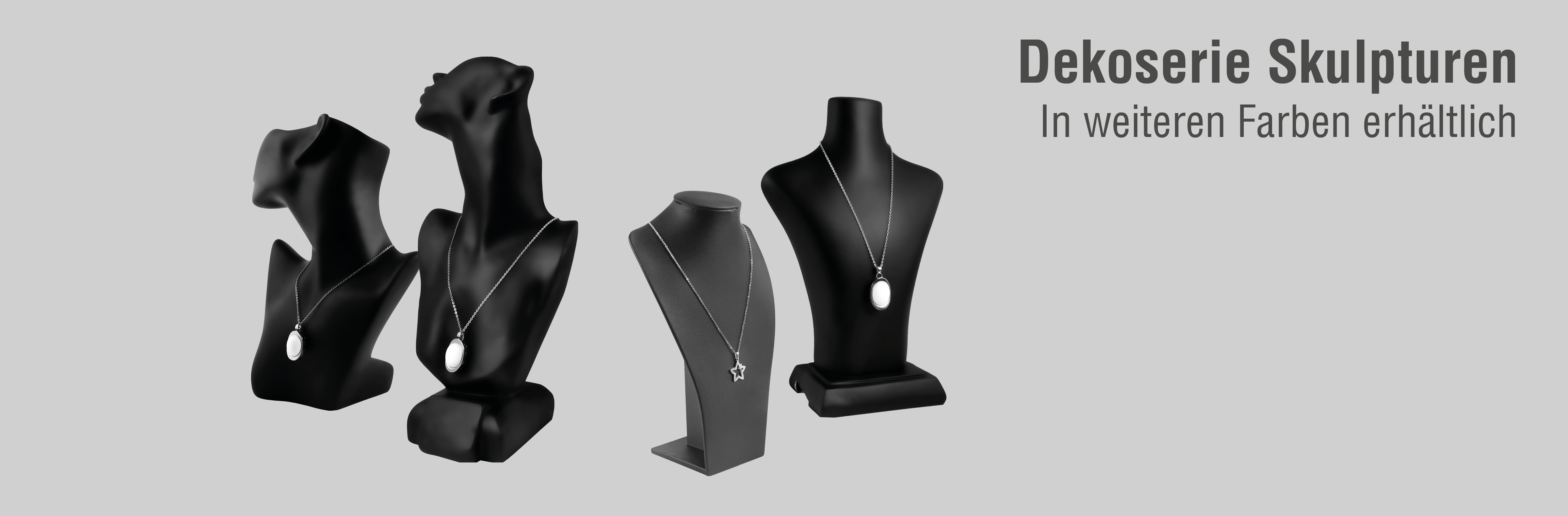 Die Dekoserie „Skulpturen“ bietet eine vielfältige Auswahl an Aufstellern und Büsten in besonderen und abstrakten Formen, die Ihre Schmuckstücke auf innovative Weise präsentieren. Entdecken Sie die Vielfalt dieser Serie mit Präsentationsmöglichkeiten in verschiedenen Farben, Materialien und Größen. Dank ihrer stabilen Konstruktion bieten sie sicheren Halt für Ihre Schmuckstücke und ermöglichen eine übersichtliche und attraktive Präsentation.
